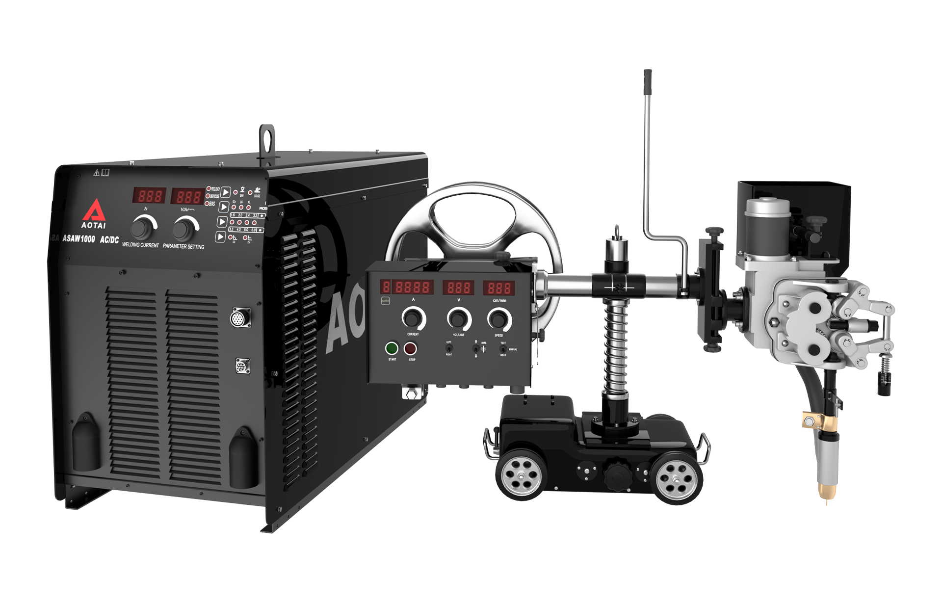 Multiple applicable SAW tractors with digital control: thick-wire (φ3.0-φ6.0) tractor, thin-wire (φ2.0-φ2.4) tractor, fillet-welding tractor, three-wheeled tractor, and pipeline welding tractor